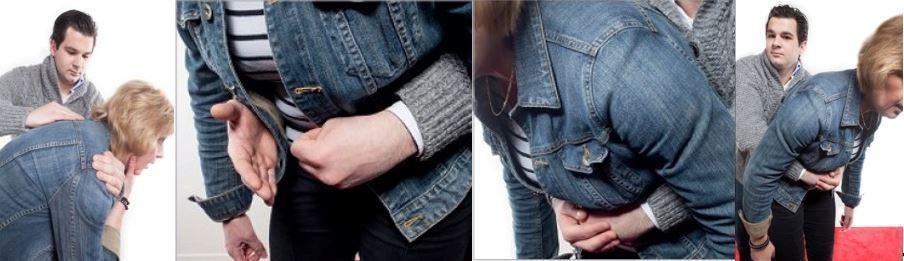 Trek krachtig naar je toe en omhoog zodat de obstructie zich verwijdert via de mond en de luchtweg weer vrij maakt;
