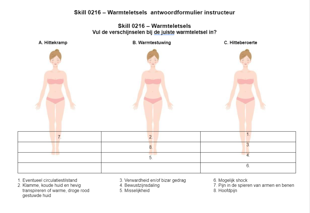 Skill 216 - Warmteletsel antwoordformulier voor instructeurs